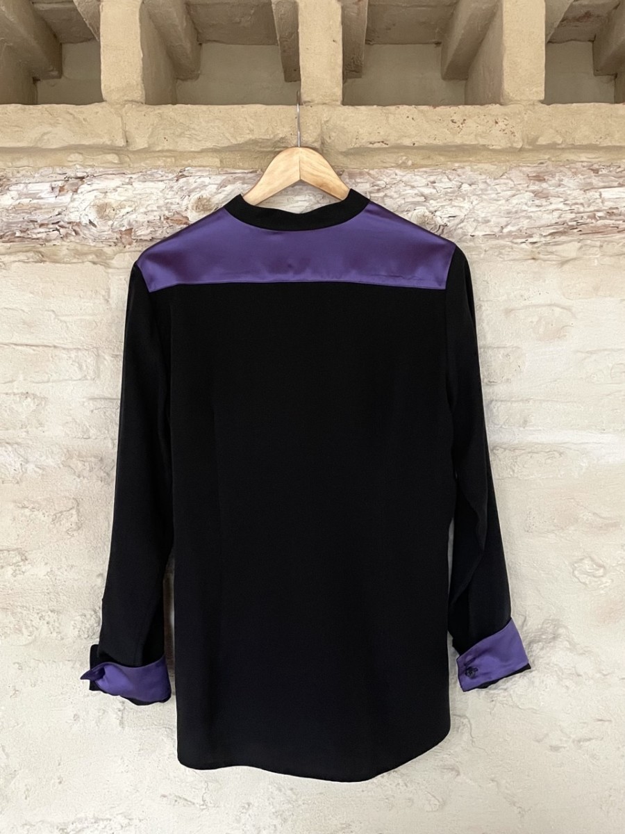 Un pezzo unico di una serie limitata: collo alla coreana, vestibilità slim. Nasce dal mix creativo di stoffe diverse di pesantezza omogenea, che un giorno si sono incontrate e non si sono più lasciate.