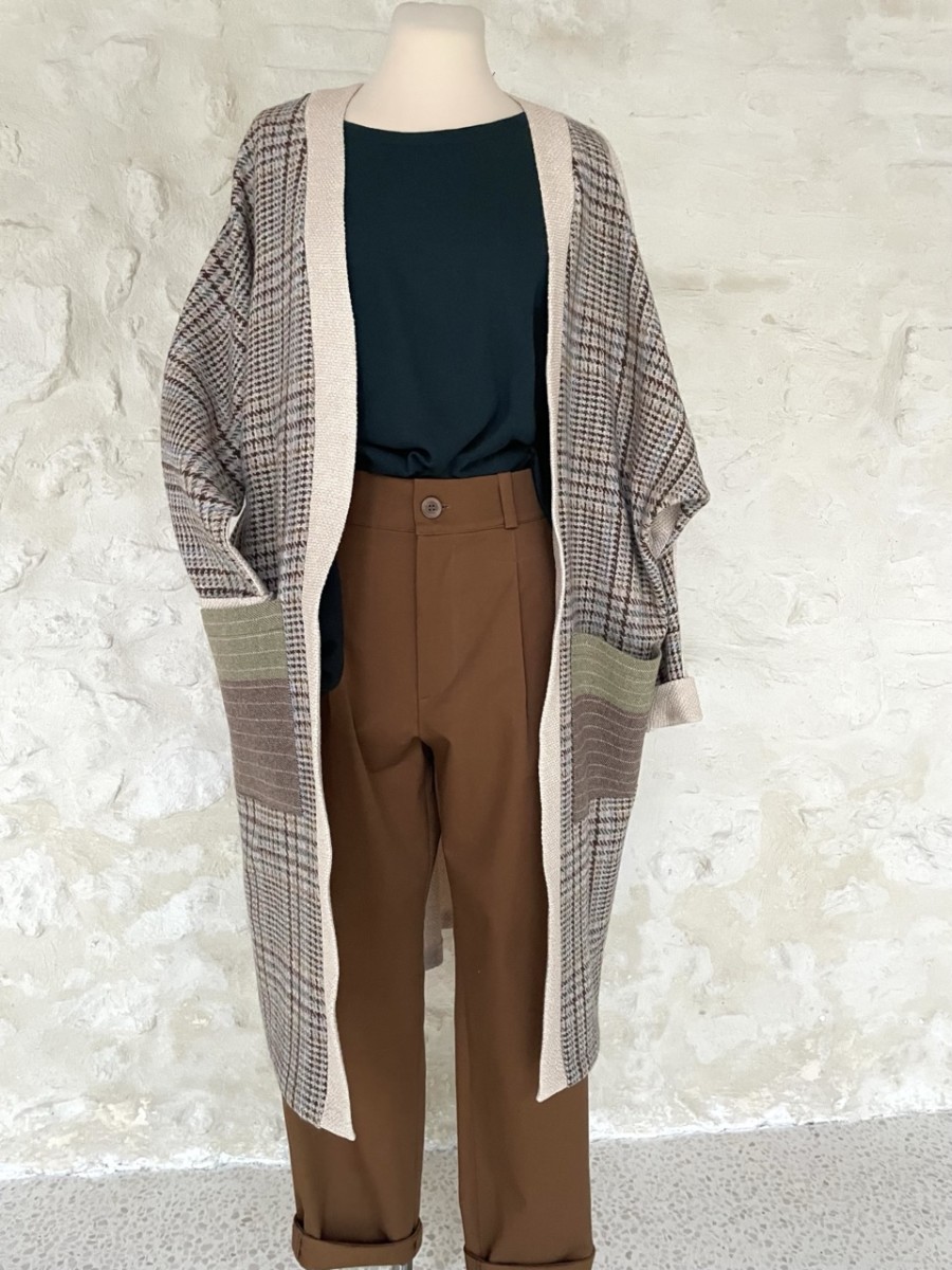 Pensato per renderti più semplice la vita senza mai rinunciare all’eleganza! Oppure easy sui tuoi jeans preferiti e una maglietta… anche in questo caso con quel tocco speciale. Questo cardigan è un pezzo unico nato dall’accostamento di cottone e lane provenienti da un’ottima manifattura tessile del vicentino, nostri vicini di casa. Sono i prodotti di “scarto: i “fazzoletti prove colore”! Ne derivano fasce o quadrati di colori diversi accostati gli uni agli altri, da cui ricaviamo il davanti di questi capo.