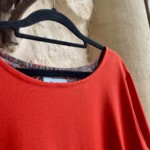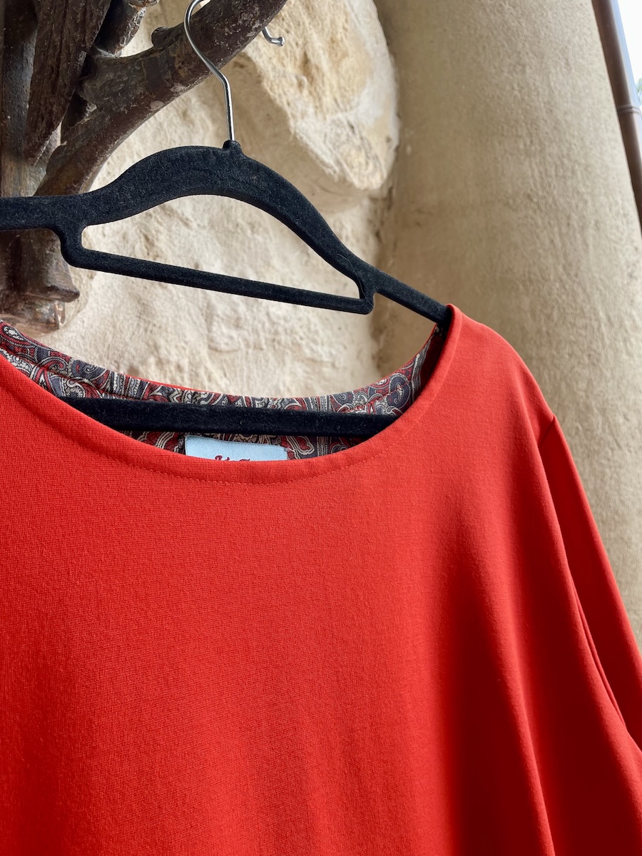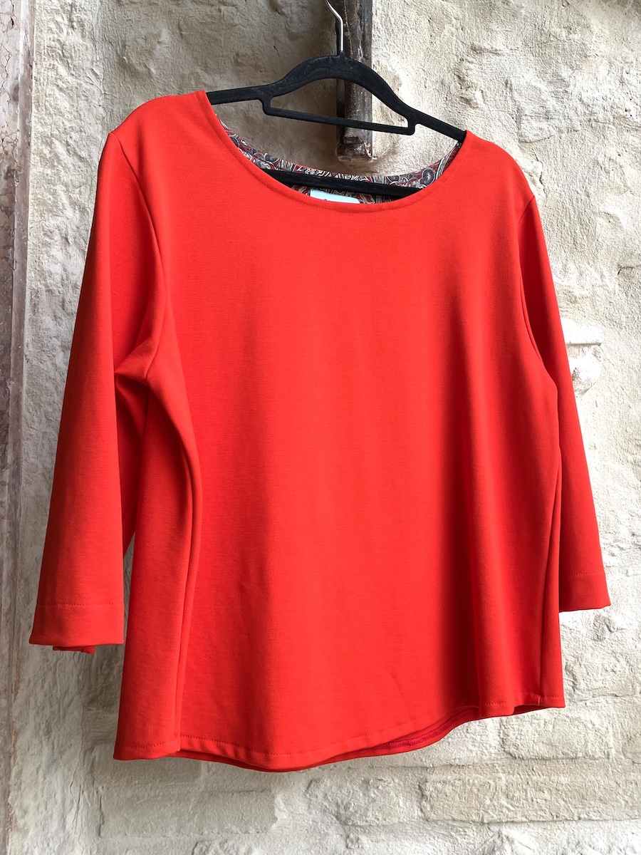 Blusa con scollo a barchetta, maniche tre-quarti. Vestibilità morbida.