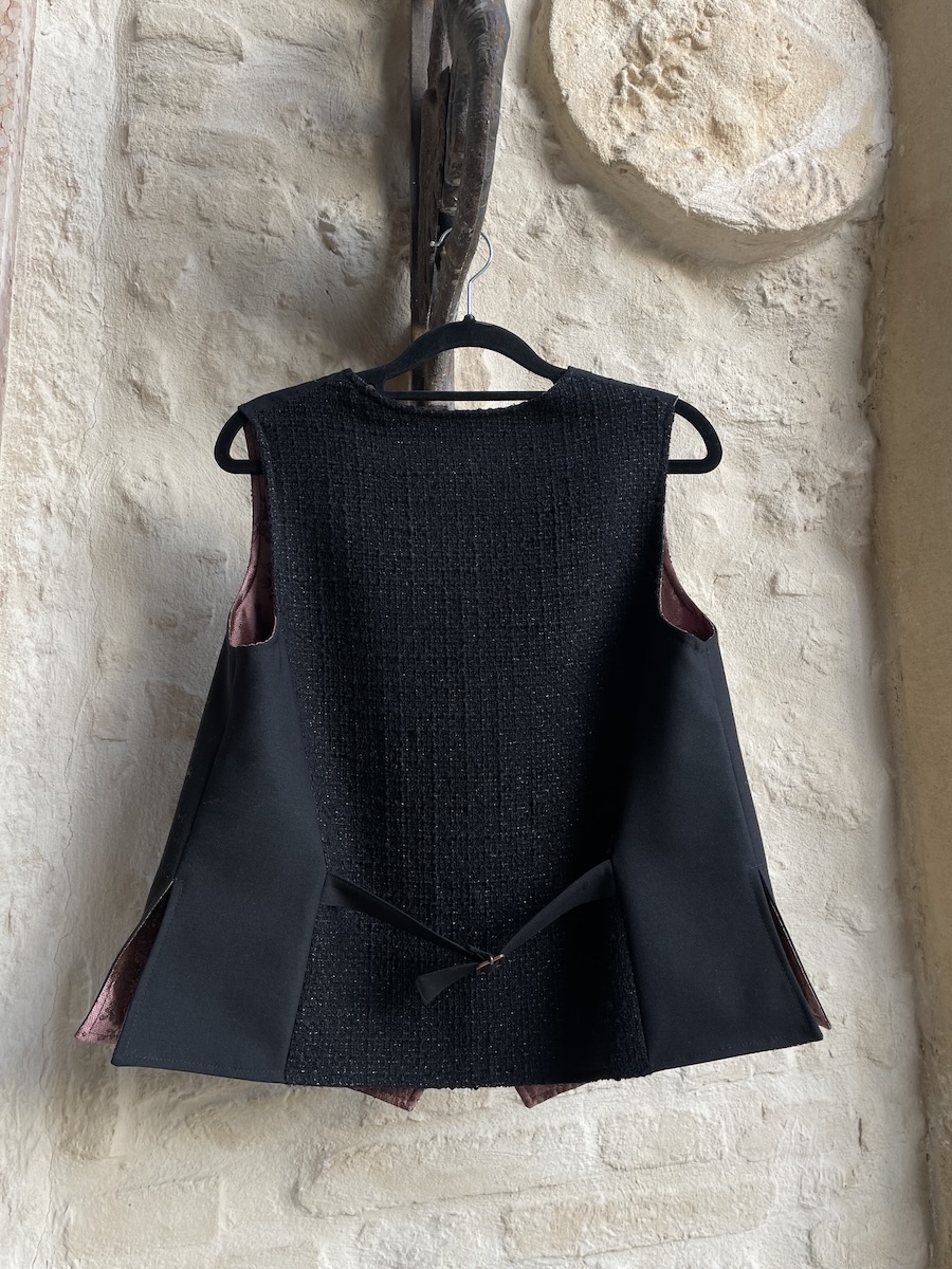 Siamo dei veri esperti di gilet e sai perché? Non richiedono molto tessuto e li possiamo confezionare accostando pezzi diversi perché un gilet è composto di più elementi di piccolo taglio: le due parti sul davanti, la schiena, i fianchi sul davanti e dietro! Il gilet è quindi emblema della nostra filosofia upcycling.